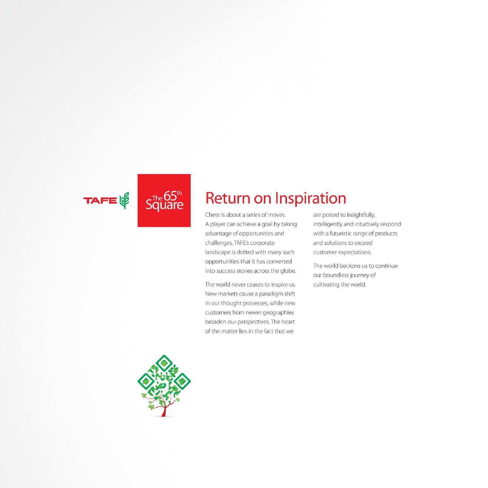 Played by an innovative mind, driven by the quest of excellence, it defines our lives and ripples out into the world around us. Discover how for over five decades, the 65th square inspires TAFE in its Journey of Cultivating the World